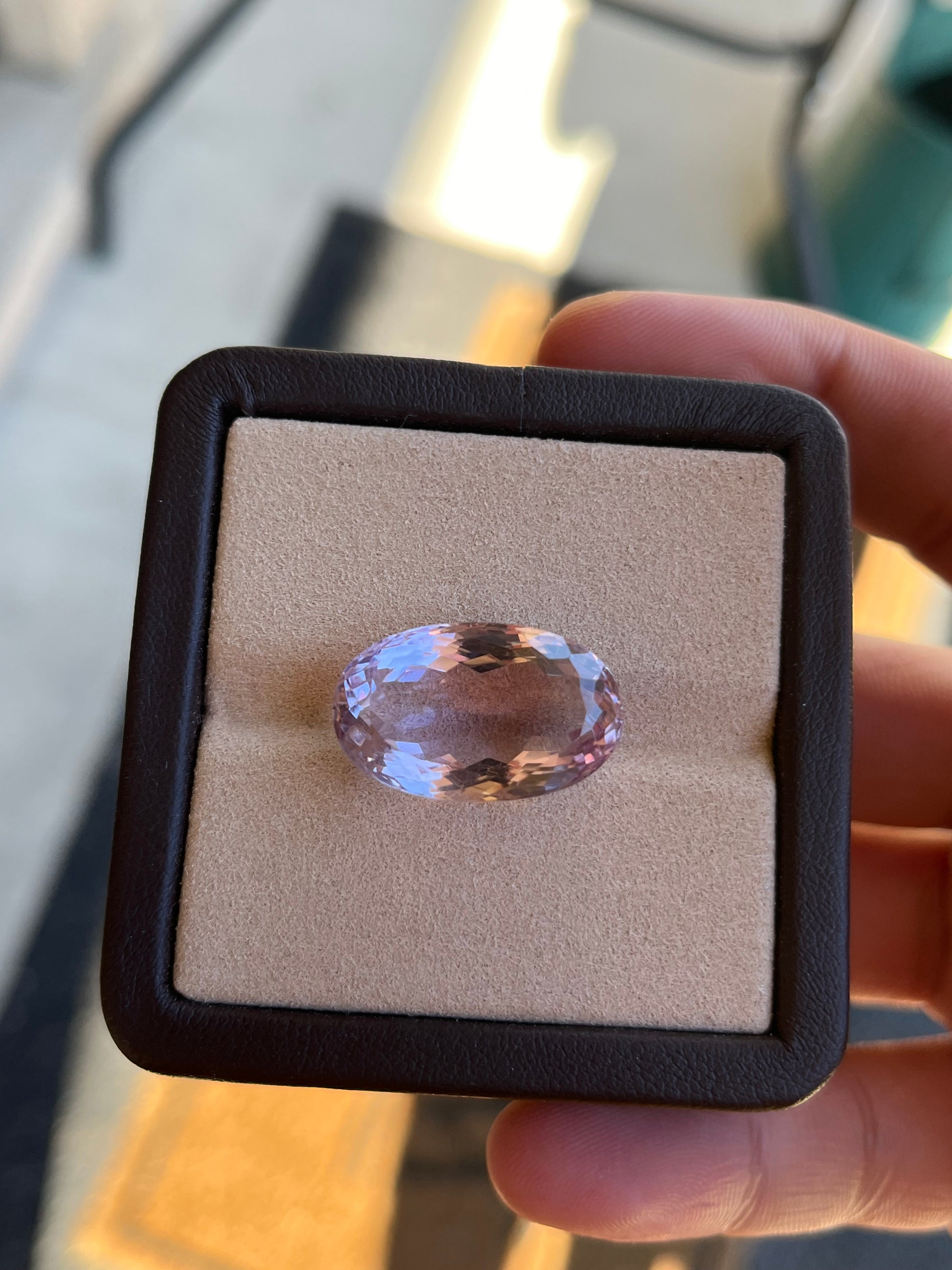 Discover the enchanting beauty of this 13-carat Bolivian ametrine, a natural masterpiece showcasing a seamless blend of soft lavender and golden yellow hues. This gem, known for its unique two-tone color, symbolizes balance and harmony, making it the perfect centerpiece for elegant jewelry designs.